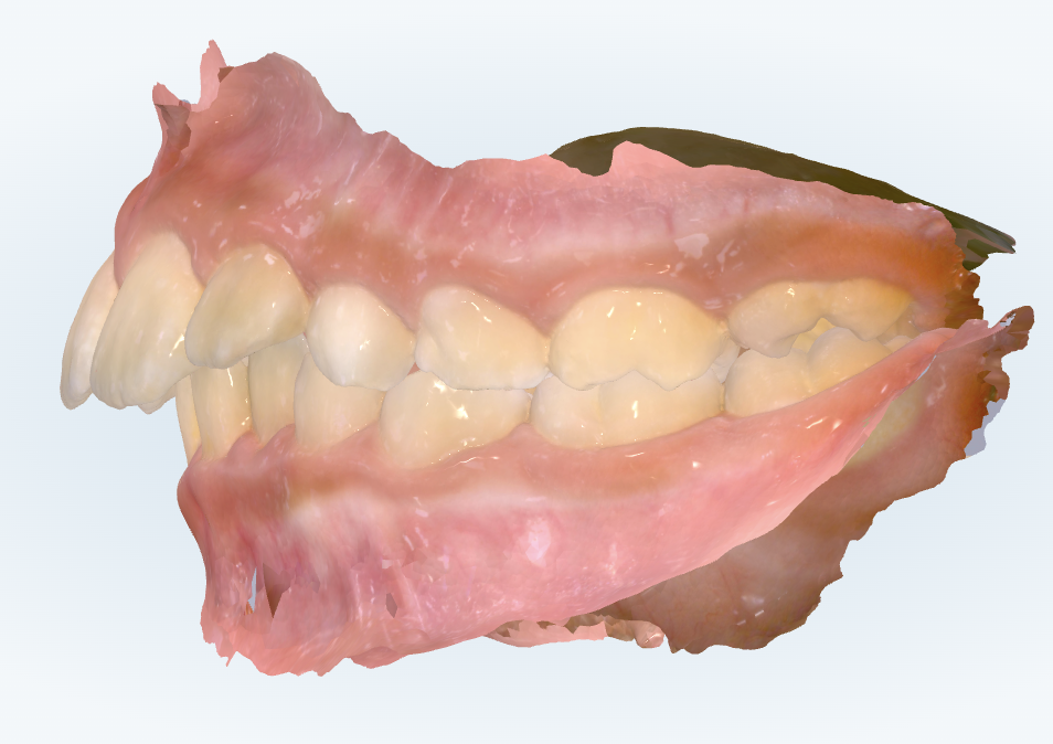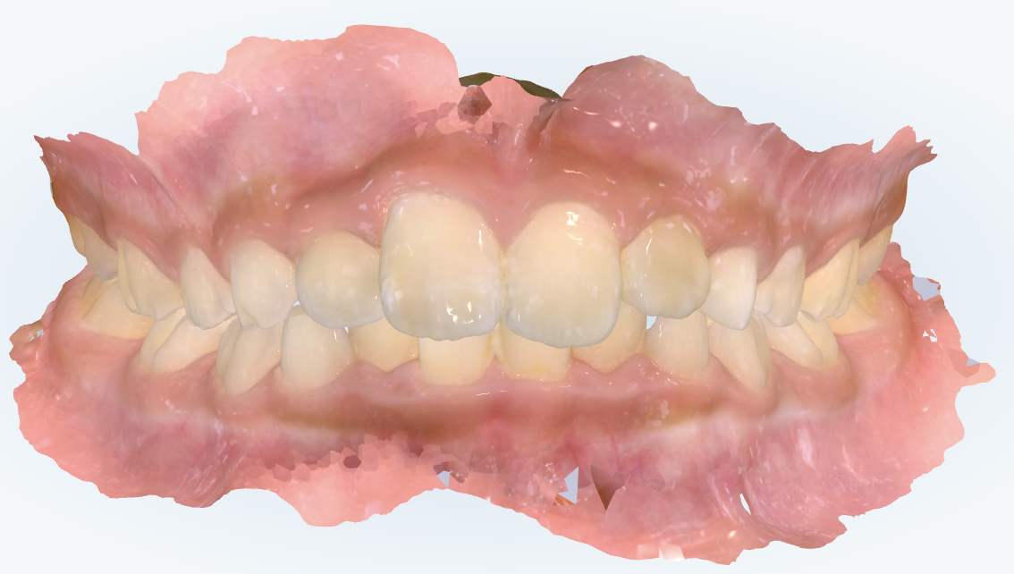 前から見ると、上の前歯が下の前歯より少し前に出ていて、“軽い出っ歯傾向”があります。ただし、出っ歯の程度は軽度のレベルです。