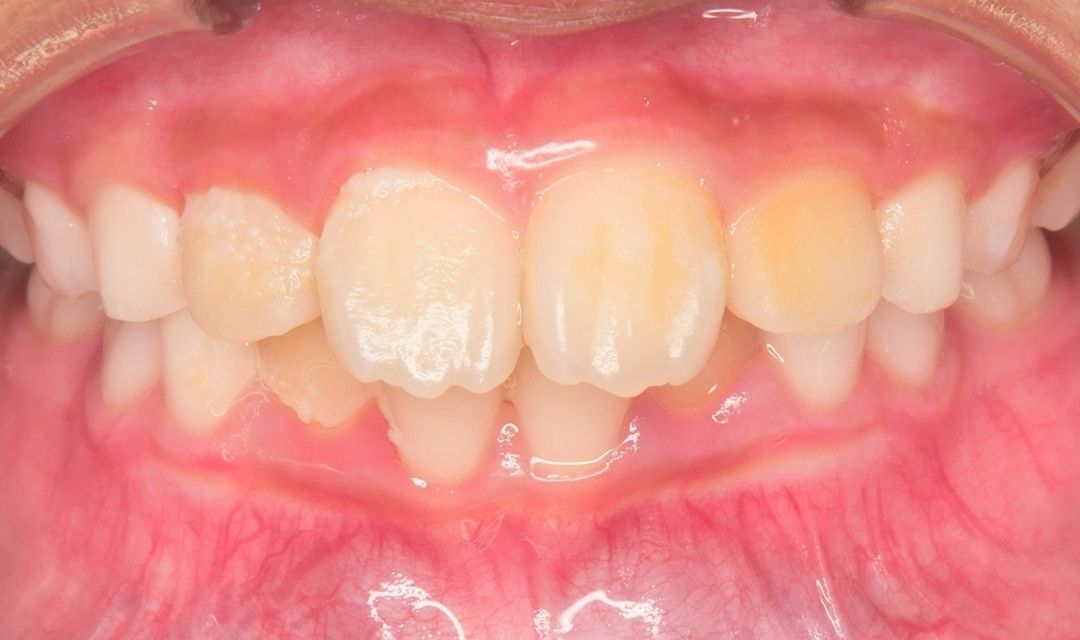過蓋咬合(前歯の咬み合わせが深い状態)と叢生(歯のガタつき)があり、成長を利用して歯並びを整えやすい時期と考えられました。