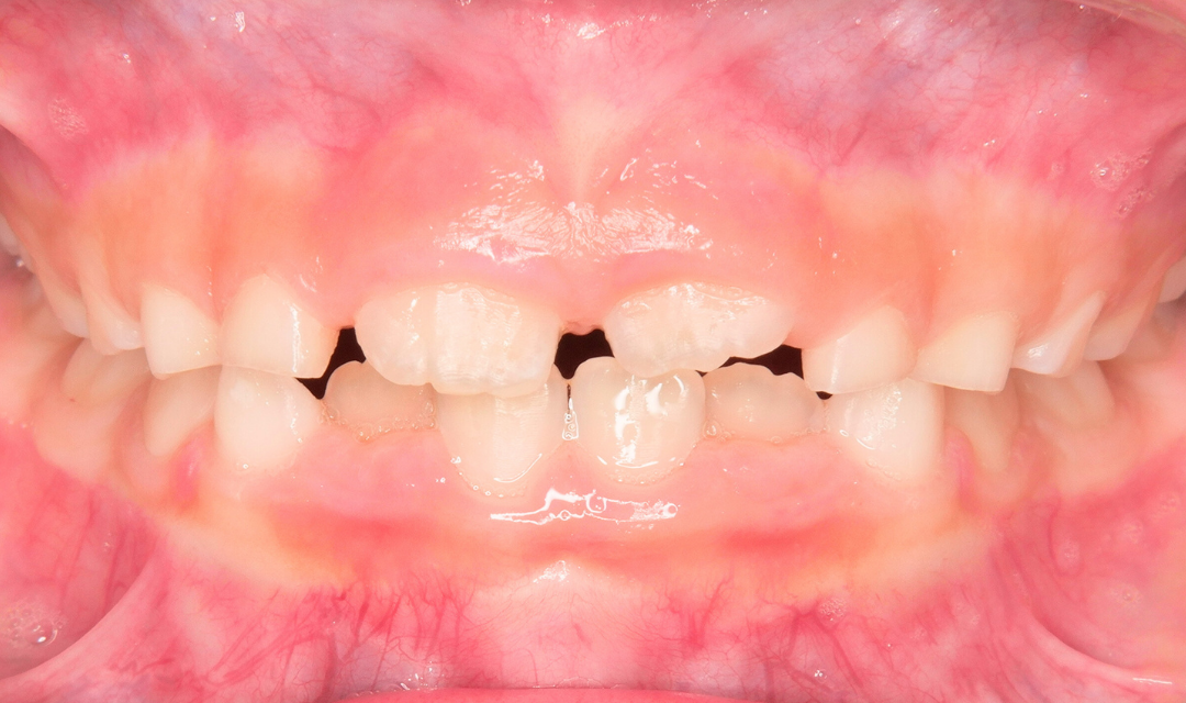 初診時には、前歯の噛み合わせとお口の使い方に特徴が見られました。