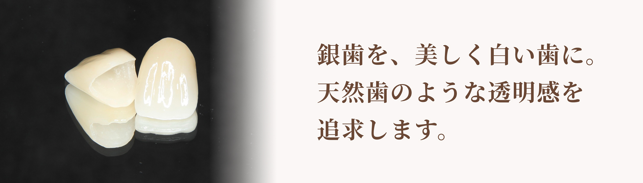 歯科治療で使用するセラミックは、いわゆる“陶器”を歯科用に改良した素材です。患者様それぞれの歯の色や透明感、光沢を再現するのに適した素材で、レジンや銀歯では実現できない審美的な仕上がりが期待できます。