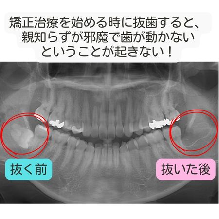 - 矯正後に、親知らずの力で歯並びが乱れ「後戻り」しやすくなる可能性がある