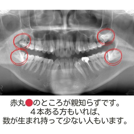 親知らずは、正式には第三大臼歯と呼ばれ、前歯から数えて8番目、一番奥に生える永久歯です。
