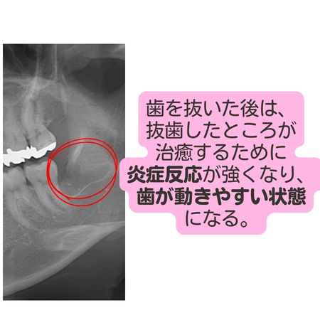 矯正装置は、抜歯後の痛みや炎症が落ち着いてから装着するのが基本です。