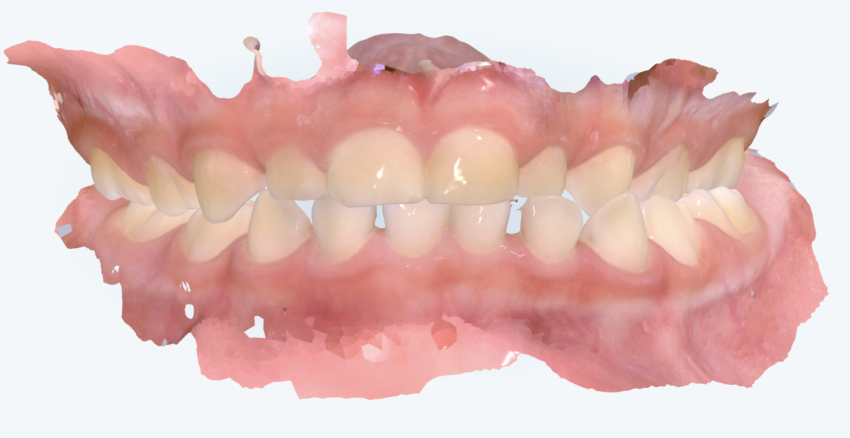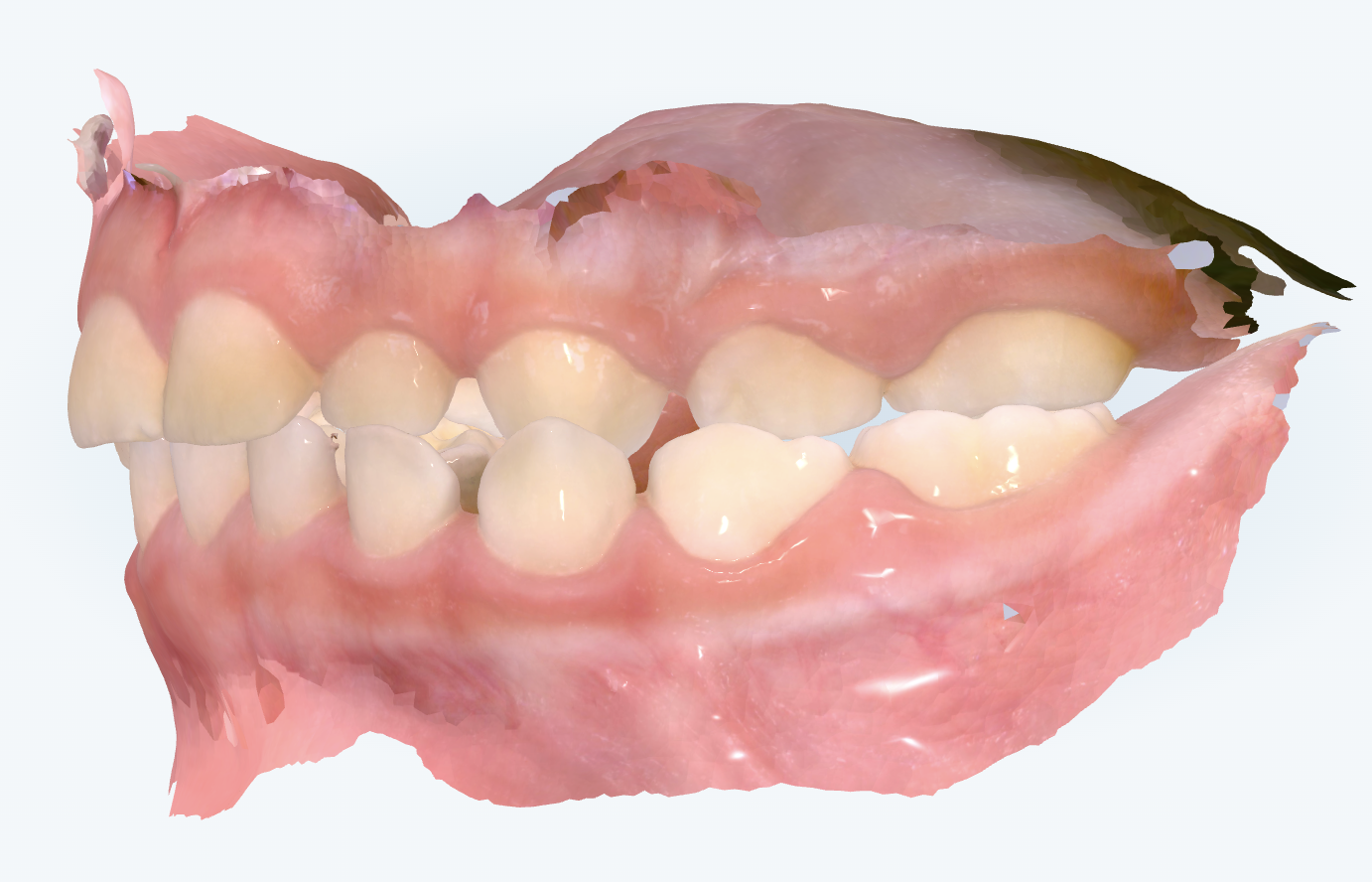 左側の噛み合わせが上下反対に噛んでいました。下顎の左方向へのズレにより交叉咬合でした。