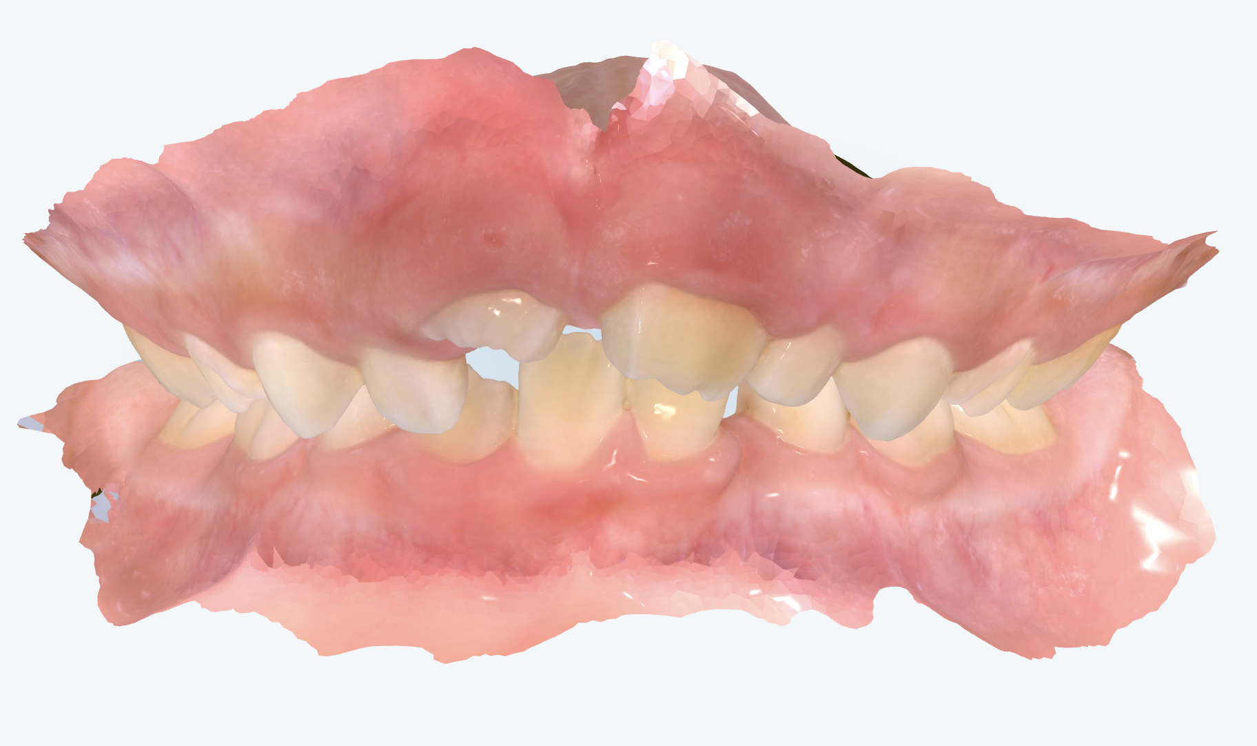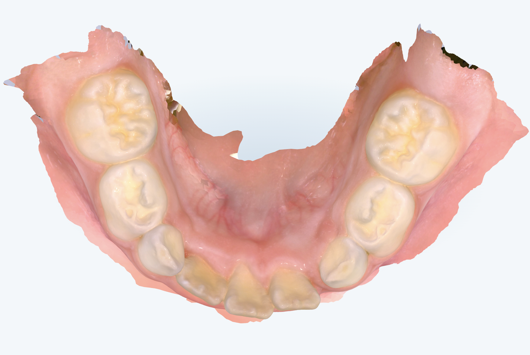 特に下の前歯は約4mm〜6mmのスペースが不足しています。このままでは自然に整うのは難しいので、歯並びを広げてスペースを確保してあげる治療が必要になると思います。