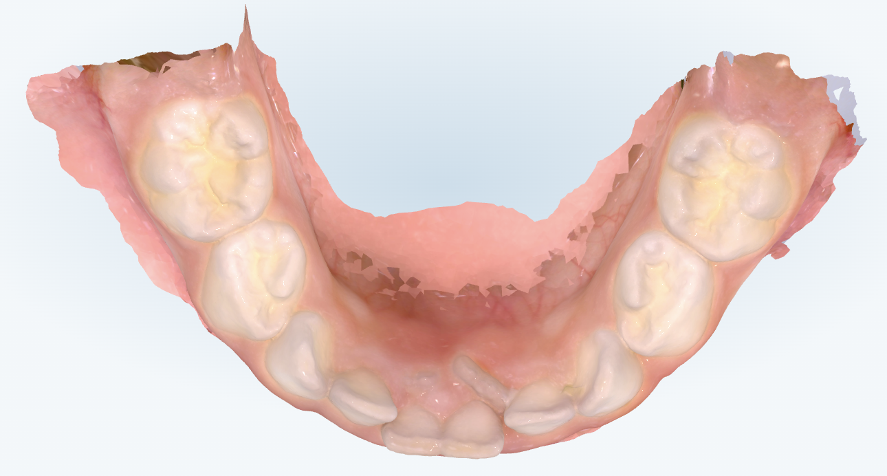 T.Iさんは、下の前歯が後ろから生えてきて「二重歯列のようになっている」と心配され、ご家族で一緒にご来院されました。