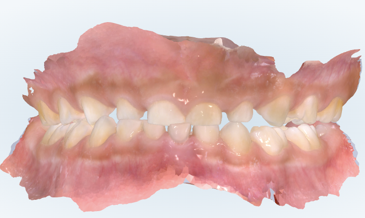 上の歯並びにはスペースがありますが、下の歯並びにはスペースがありません。