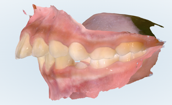 本来は、奥歯の山と谷が交互に噛み合う形が理想ですが、今は上の歯が前に位置しています。