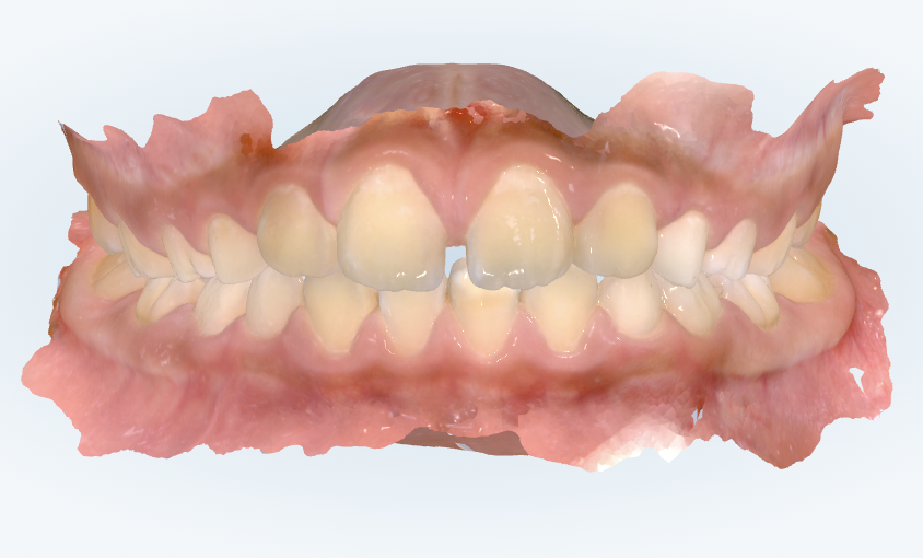 上下の前歯に前後的に距離があり、出っ歯さん傾向です。