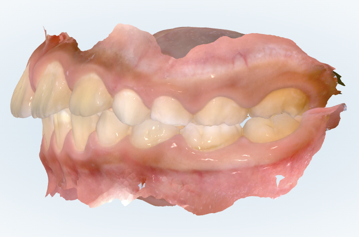 かみ合わせに関しては、奥歯のかみ合わせはほんのわずかに出っ歯傾向があります。ただ、顎の成長や生え変わりで調整できる範囲であるため、矯正治療をすることで綺麗な噛み合わせになります。