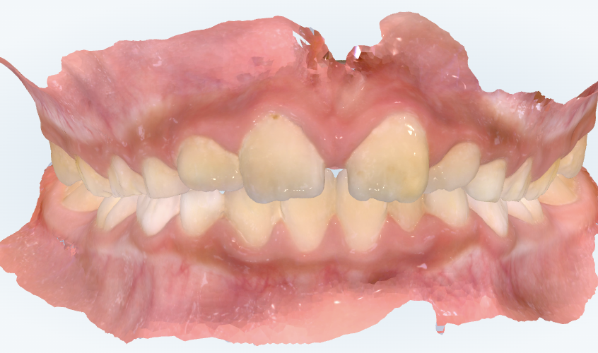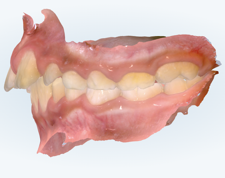 横から見ると前歯が少し前に出ていて、奥歯のかみ合わせも上の奥歯が本来の位置より前側にある出っ歯傾向のかみ合わせになっています。