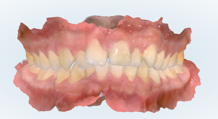 上下の歯並びに中程度のガタガタがあります。