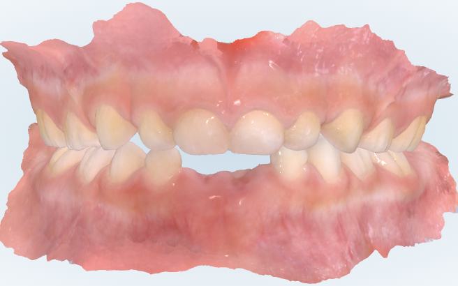 上の前歯は少し詰まって見えますが、後の歯を見てみるとちゃんとスペースがあります。