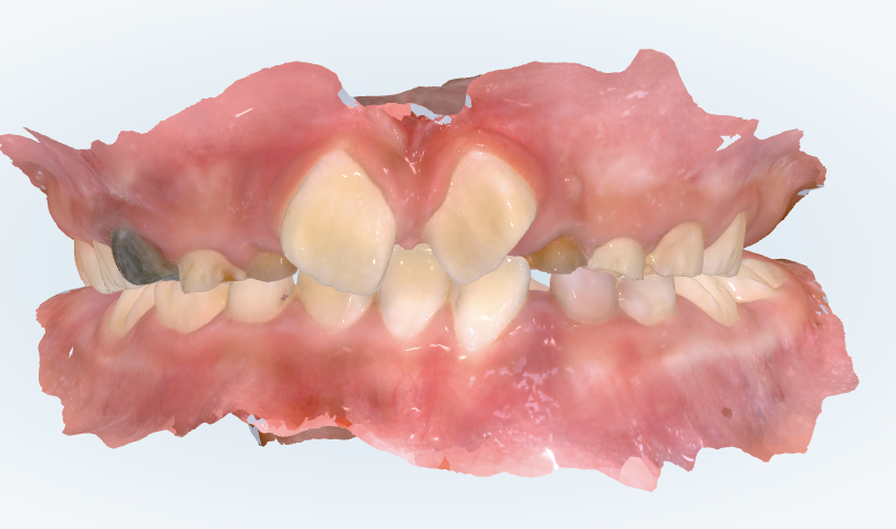 H.Yさんは、「前歯のねじれやガタガタが気になる」「下の歯が内側から生えてきている」といった点を気にされてご来院されました。かかりつけの歯科医院では「もう少し様子を見てもよい」と言われたものの、このまま悪化しないか不安に感じ、専門的な判断をご希望されていました。