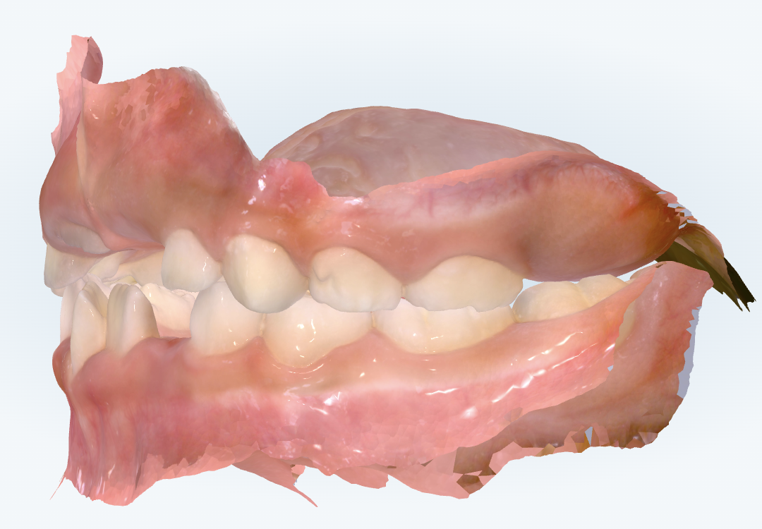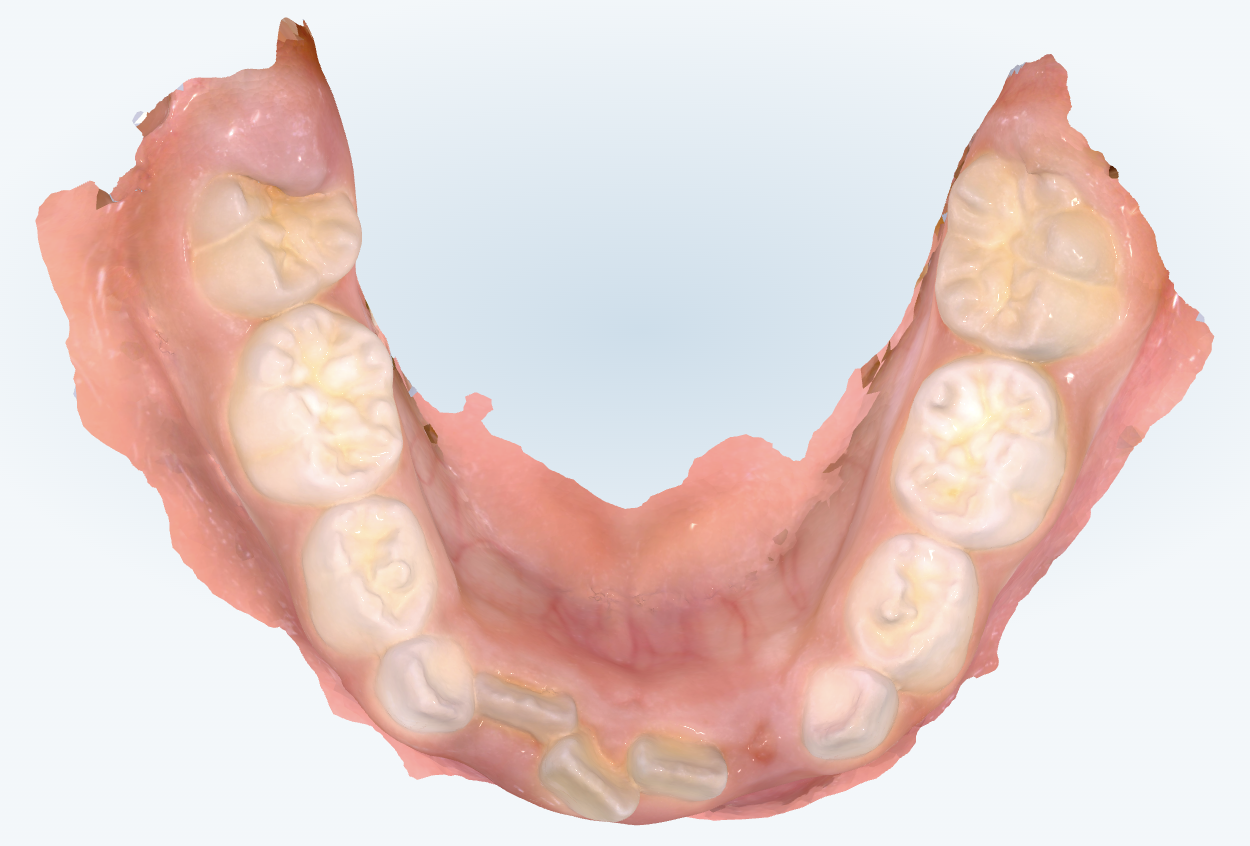 検査では、前歯部のスペースがやや不足し、上下歯列の弓形(アーチ)がやや狭いことがわかりました。