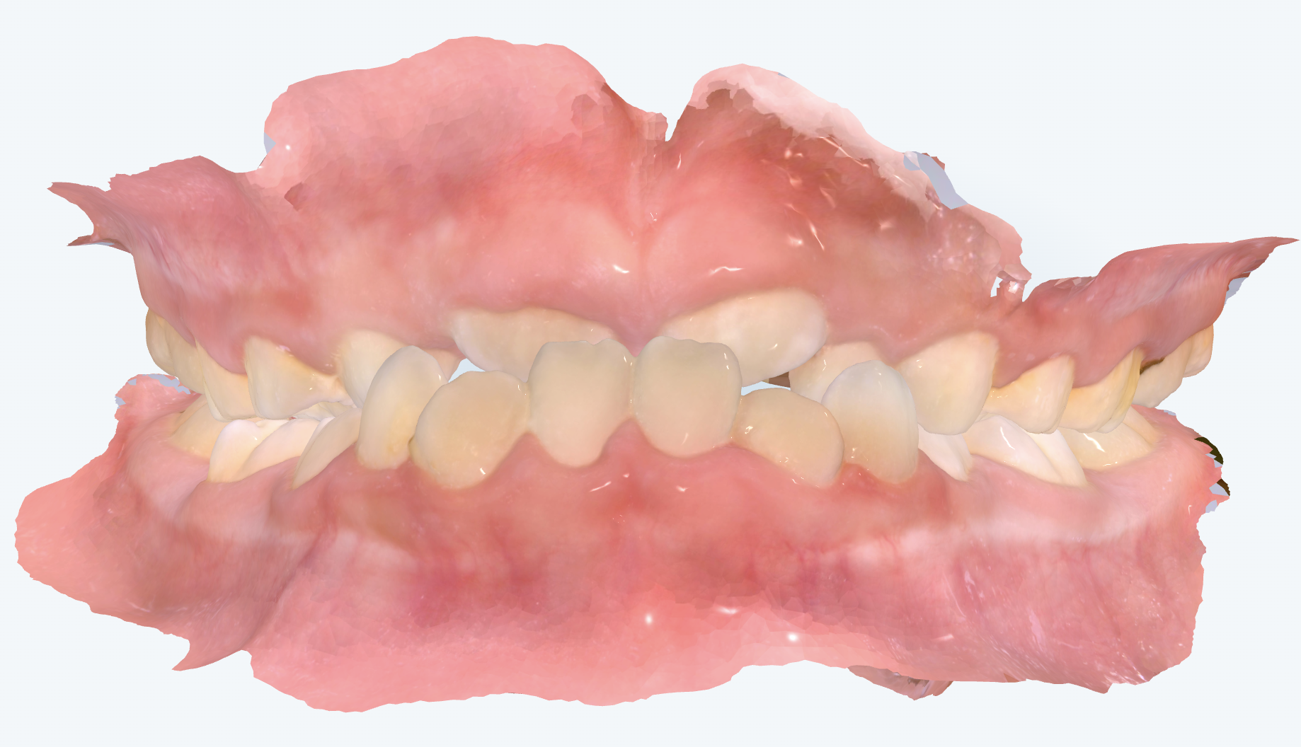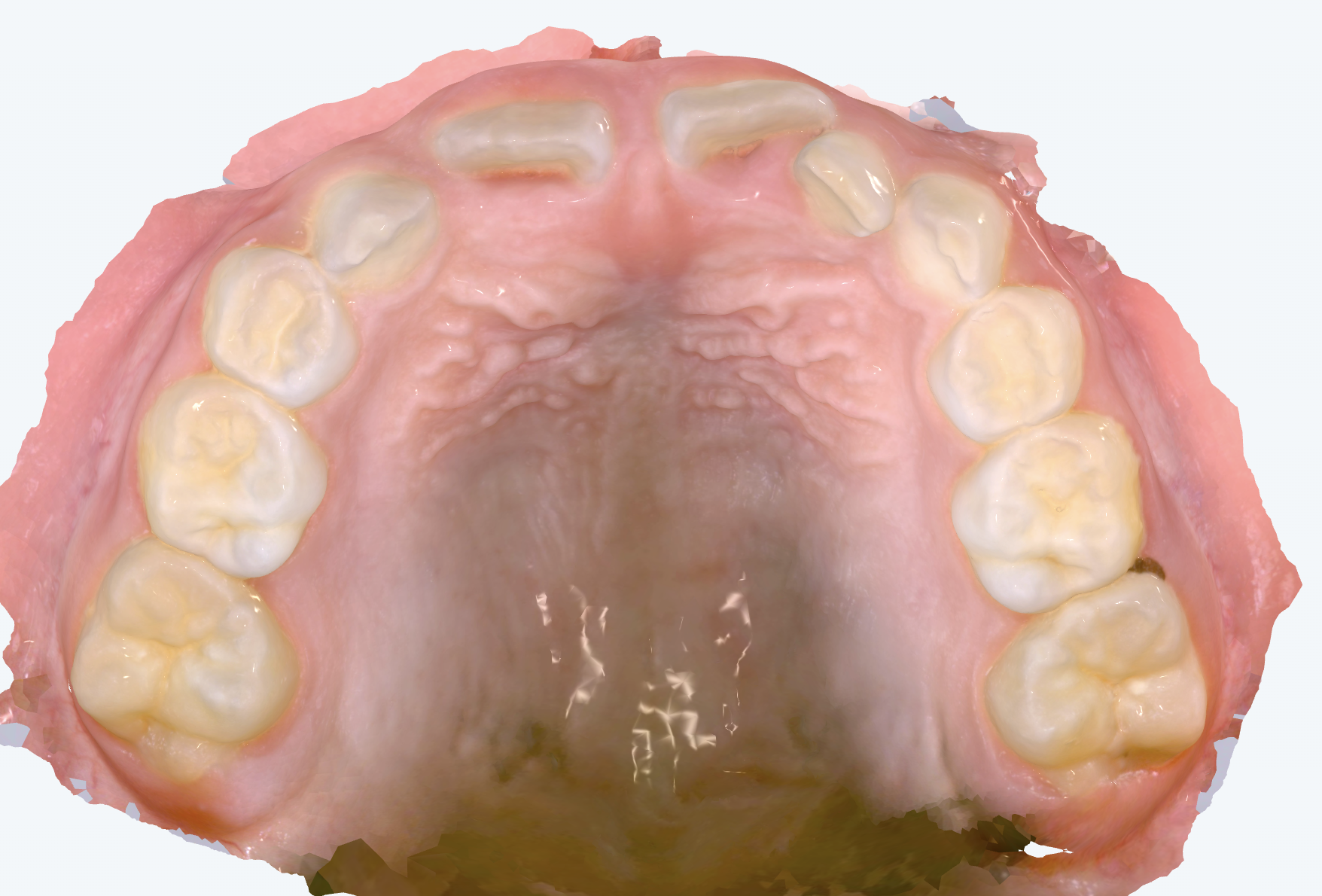 上の歯並びはガタガタがあり、左上の前から2番目の歯が生えるスペースがありません。
