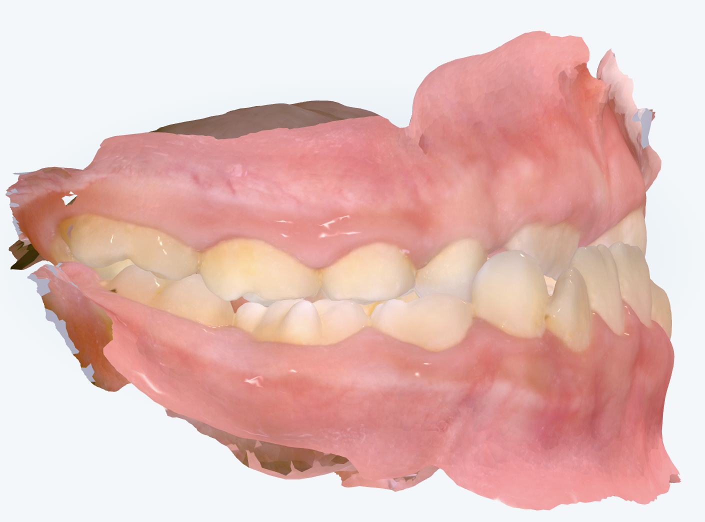 はい、実際にかみ合わせを確認すると、前歯が反対咬合になっていて、奥歯の関係性も受け口傾向にあることが分かります。理想的には、上と下の奥歯のラインがきれいに重なるのが望ましいですが、今は下が前に出ています。骨格的にも下顎が上顎よりも前にあるため、受け口の骨格をしています。