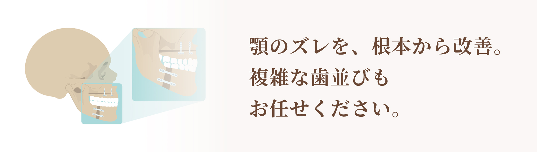 外科的矯正治療とは、「顎の骨」を手術で動かすことで、骨格と歯並びを整える治療法です。つまり、「歯並び」だけでなく「骨格そのもの」に問題がある場合に行う必要があるのです。